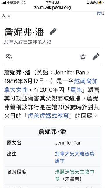 這案例國外滿有名的,女兒叫Jennifer pan