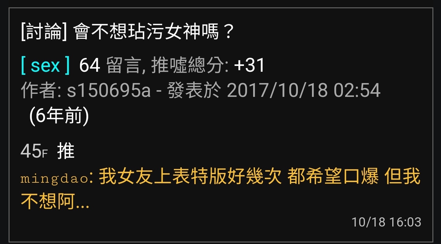 推 lyt5566: 我都不知道表特版那麼多阿瞞 223.136.13.226 10/27 14:58