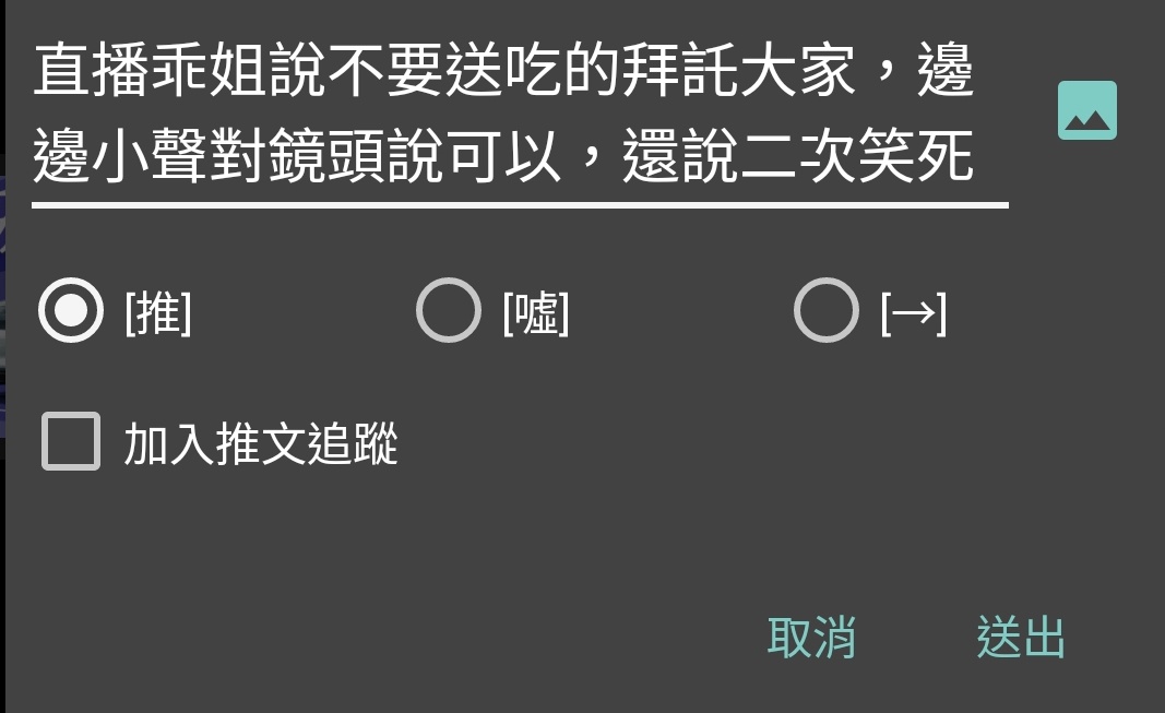 → ppt12527: 上面打錯,是那些送食物的留言 1.163.39.123 12/01 20:07