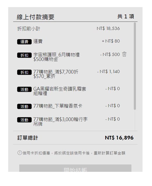 (如果有七月生日禮券還能再扣500元)