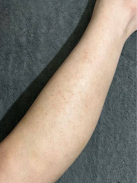 本身因為以往都是用拔除的方式除毛,所以腳上有滿嚴重的毛囊角化和內包毛的問題