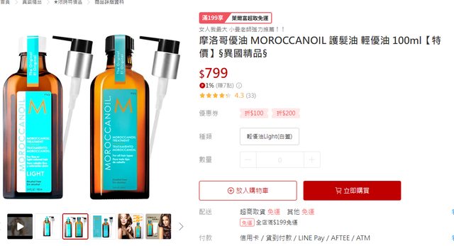 標題[情報] 摩洛哥輕優油 100ml $799免運