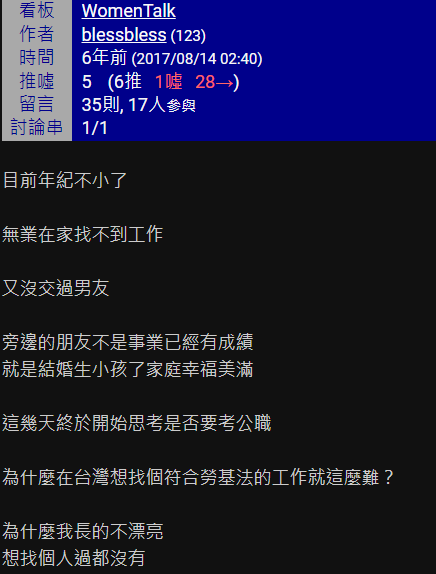 → bbbing : 好女孩最討厭性別歧視,還有低學歷的人? 12/06 09:35