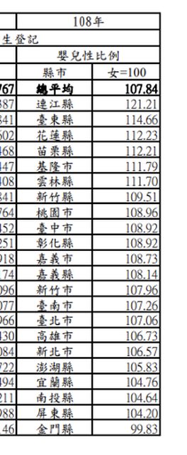 → dsf980036 : 離島出生數少,可能多幾個男生性別比就差很大 08/01 11:33