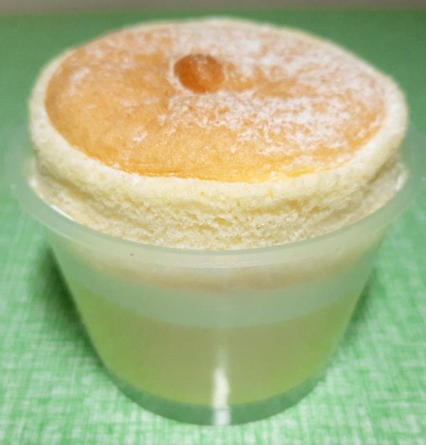 上面的舒芙蕾蛋糕體裡面有一些奶油在裡面