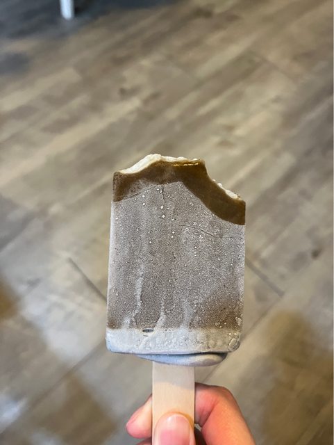 這隻雪糕一開始咬下去茶體外殼很厚實,茶味頗濃甜感也很低,可以中和芝麻的甜感跟膩