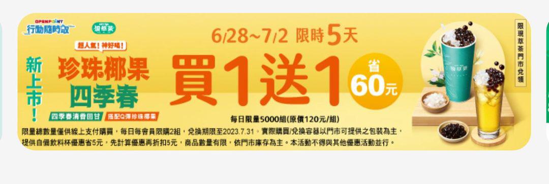 【商品名稱/價格】:珍珠椰果四季春/原價60,現優惠49