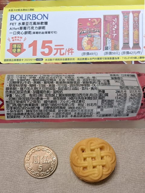 2款草莓的都是原價$42,出清$15,活動到7/9,效期2023/8,雖然即期但味道正常的餅乾