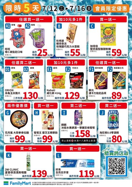 標題[情報] 全家 07/12~07/16 限時優惠