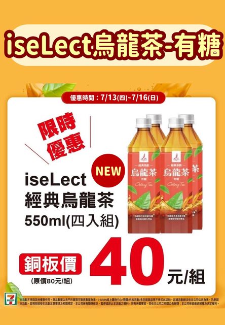 標題: [情報] 7-11經典烏龍茶550ml 4入 40元 7/13-7/16