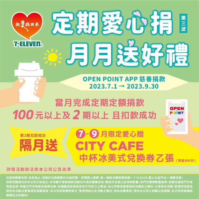 【注意事項】:捐款金額不享有小7集點卡及OPEN POINT等點數累點