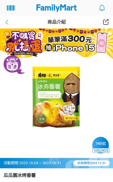 推 wwowmm: 想問在全家app買地瓜有划算嗎?會很盤嗎XD?10/31 01:32
