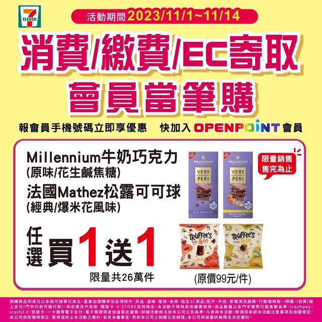 標題: [情報] 7-11 限時優惠 11/3~11/6
