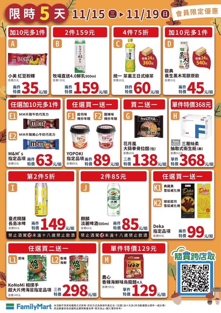 標題[情報] 全家 11/15~11/19 限時優惠+5康康