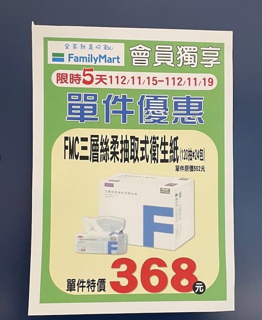 → nching2: 全家群組最近好市多衛生紙370 11/15 21:06