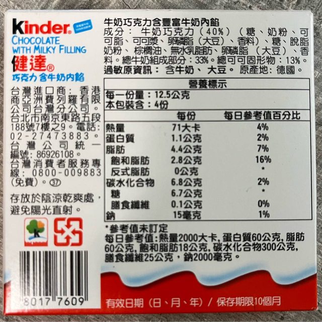 健達巧克力含牛奶內餡(4入)$37
