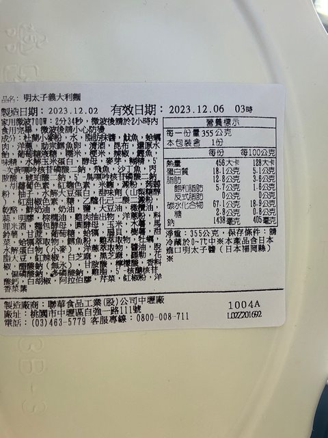 【商品名稱/價格】:明太子義大利麵 89元