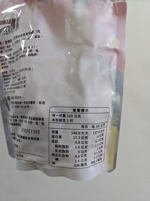 【規格/內容物/熱量】:108g,熱量 148.8 大卡