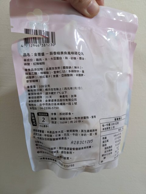 【商品名稱/價格】:金豐盛 蒜香紐奧良風味雞Q丸(增量版) / 49元