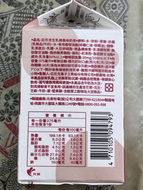【便利商店/廠商名稱】:全家 亞尼克監製 光泉製造