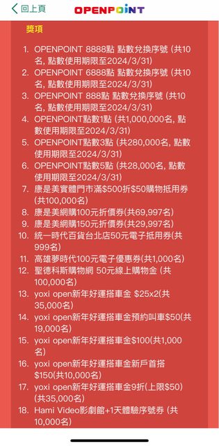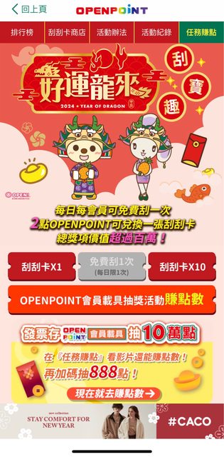 標題[情報] OPENPOINT APP好運龍來刮寶趣