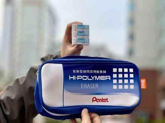 ▲「Pentalx胡同炭烤魷魚絲」附送放大版橡皮擦造型收納包,裡面裝的是滿滿的香烤魷魚