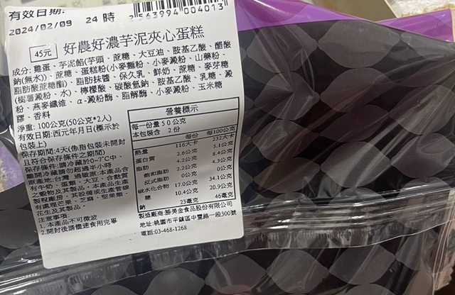 【商品名稱/價格】:好農好濃芋泥夾心蛋糕/45元