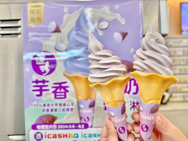 出這支口感厚實、香氣濃郁的芋香牛奶霜淇淋;為慶祝新品上市,7-11霜淇淋門市即日起