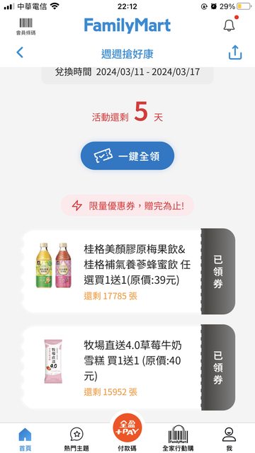 今天剛好看到全家APP的優惠券有一張雪糕買一送一券