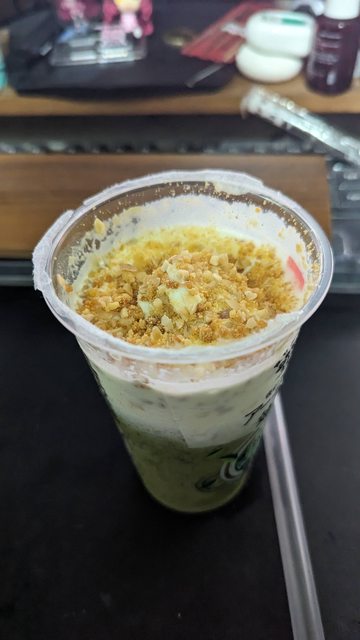 茶的部分,生味比茶味重,甜味低,剛攪開確實有海苔粉的味道,後續不明顯,