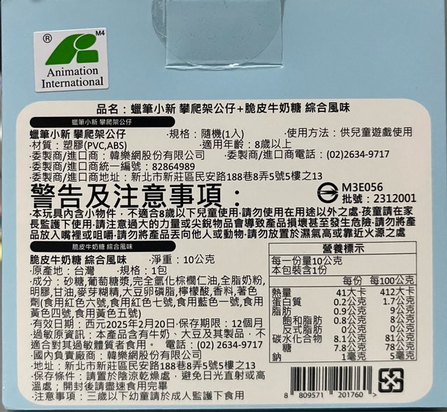 : 【商品名稱/價格】:蠟筆小新攀爬架公仔+脆皮牛奶糖綜合風味/159元