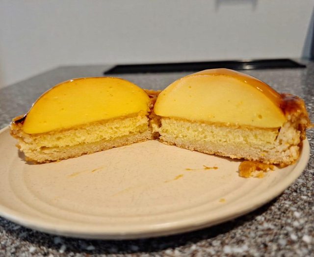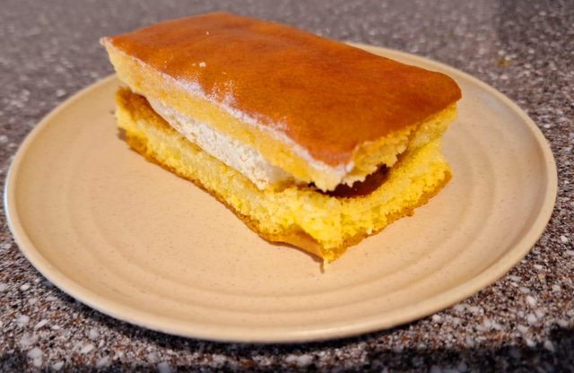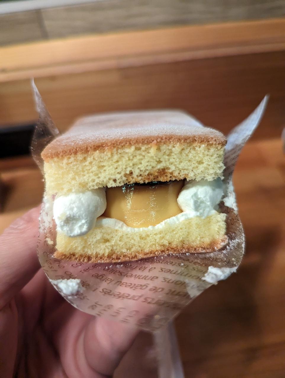 鬆軟的海綿蛋糕夾著微苦小硬的卡士達布丁的甜點