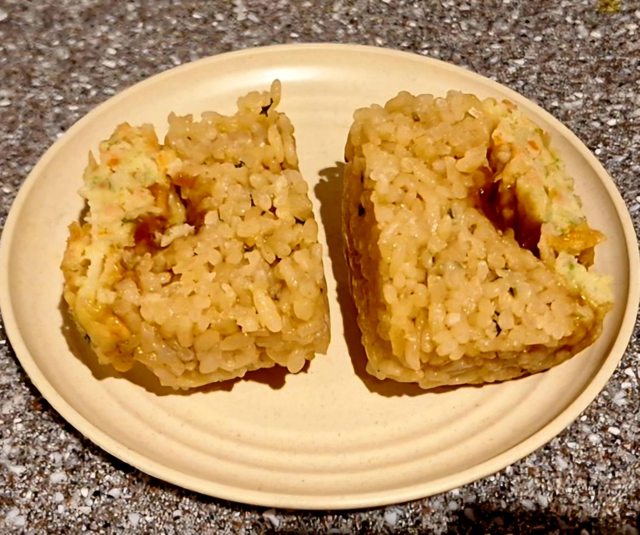 好像是東北限定的產品 飯糰抹上了焦香的醬油下去烤 稍微有點重口味