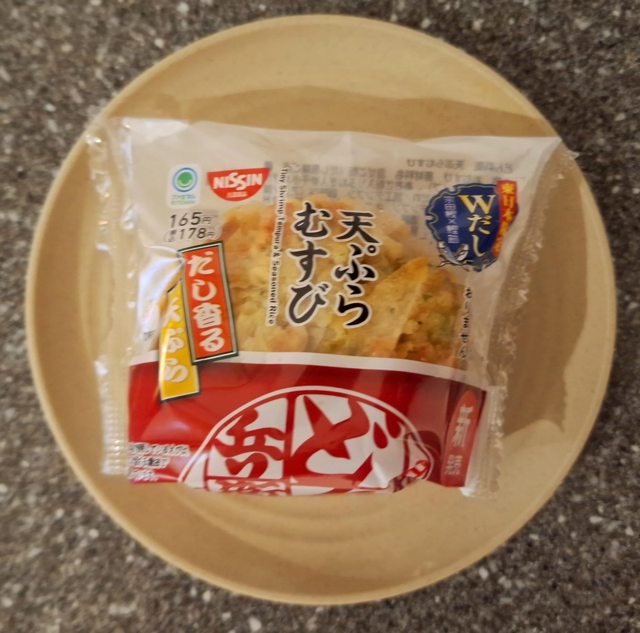 跟日清的咚兵衛聯名的產品 高湯飯糰上面加上了咚兵衛泡麵的炸天婦羅