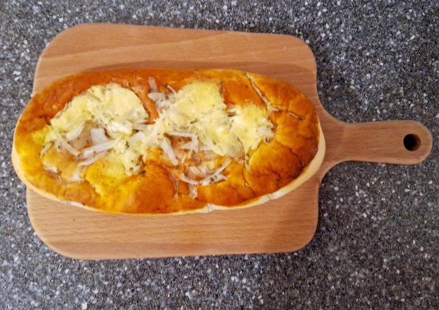 比起蕃茄來說 個人覺得洋蔥味道更加搶戲的披薩麵包
