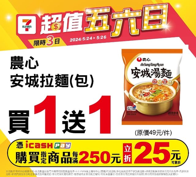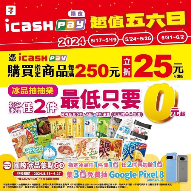 : 以icash Pay支付滿250元立折25元