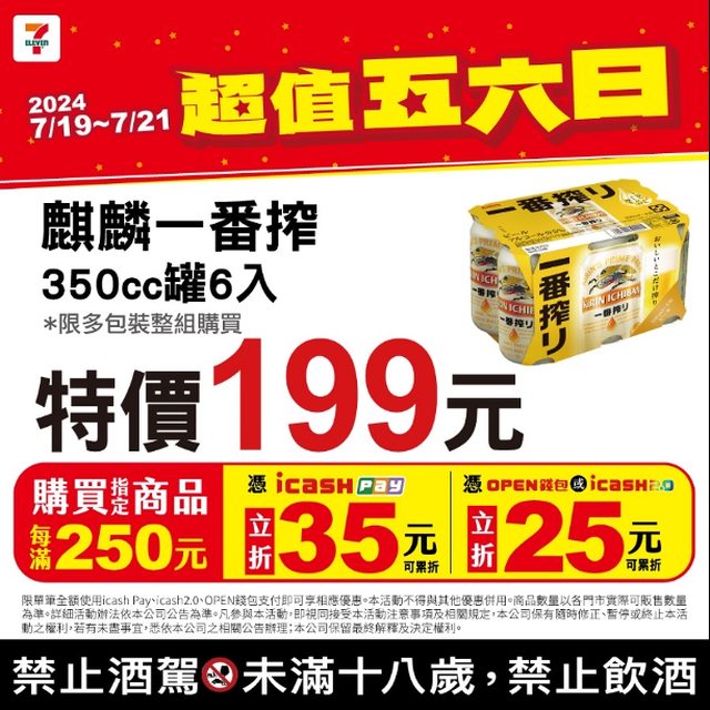 標題[情報] 7-11超值五六日7/19-21 icashPay 折35元