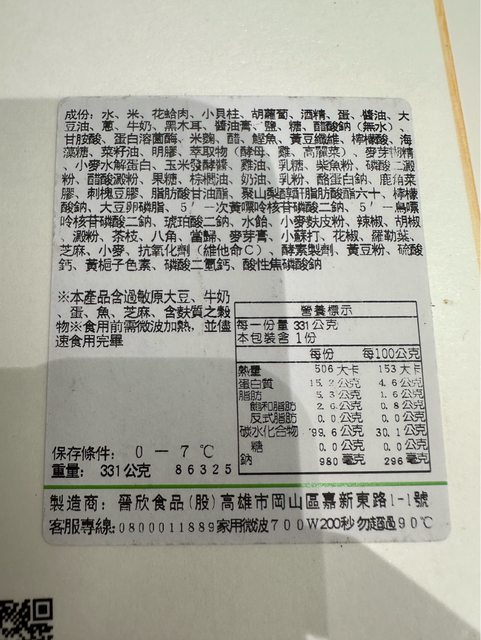【規格/內容物/熱量】: