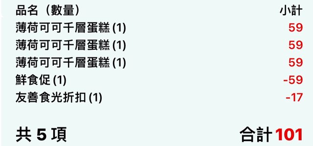 薄荷可可千層蛋糕:原價90分/友善95分/買一送一100分