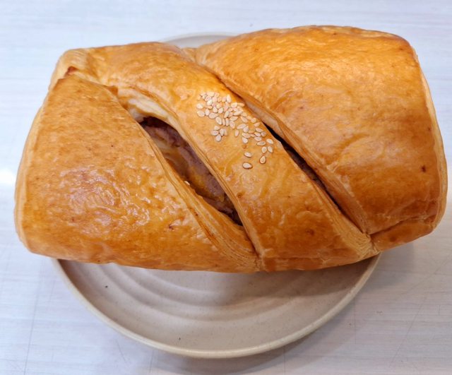 首先分享的是這款「芋泥肉鬆嫩蛋捲餅」
