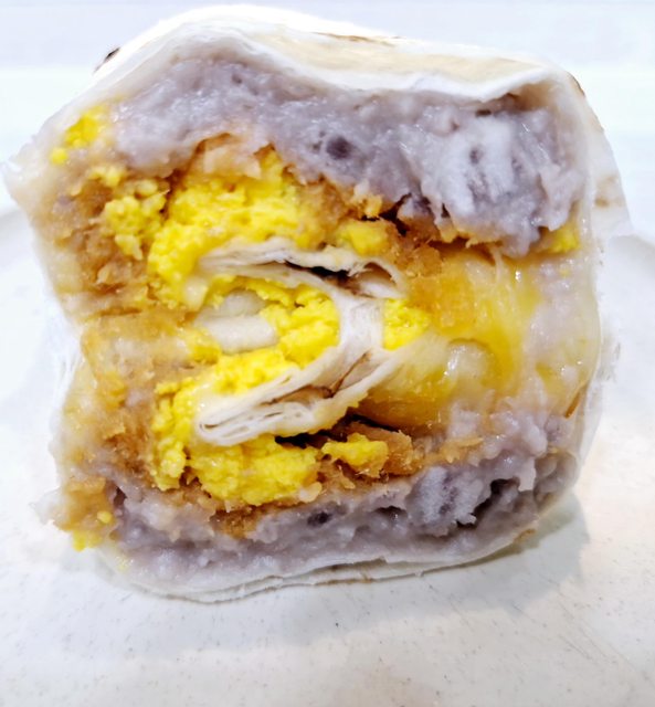 捲餅裡面滿滿的芋泥 嫩蛋 還有肉鬆