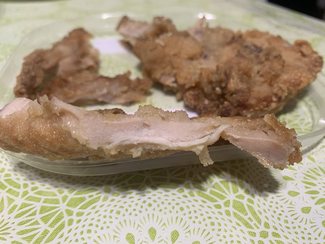 再來,所謂的大雞排,是有附雞胸骨的。這不讓人意外,但問題是骨頭部分佔比太高了。