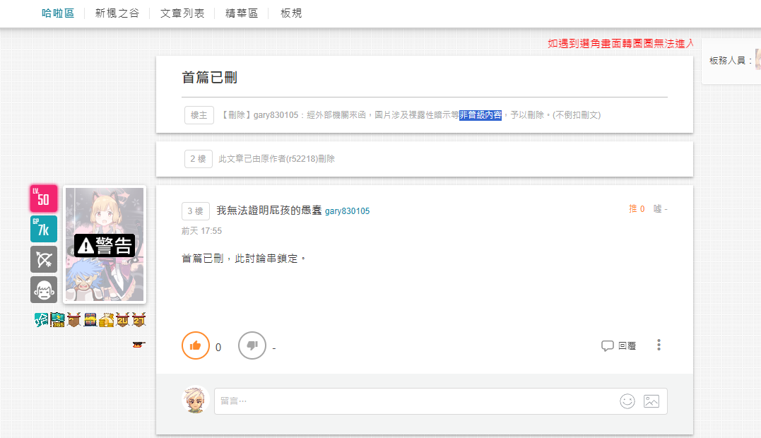 → z2wen: 普遍級論壇被刪是否合理 03/17 18:54