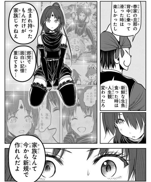 玄蕃則說家人不只能由血緣建立,透過與郎黨一起創造有趣回憶的過程也能形成的