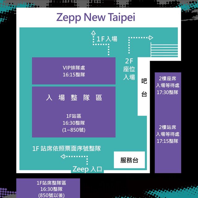 請於 17:30 至 Zepp New Taipei 前廳側門