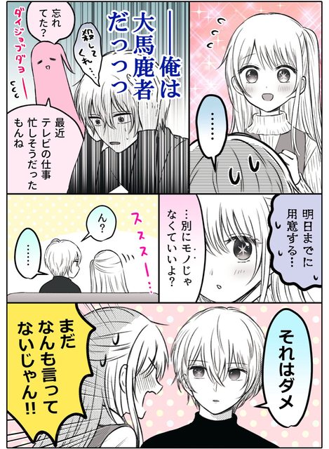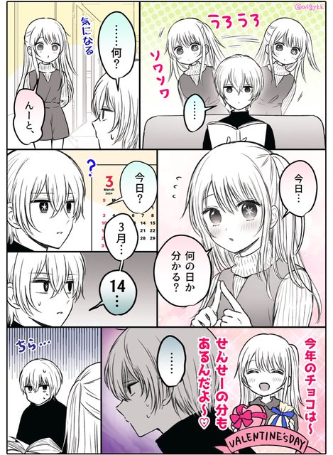 「我對於忘了白色情人節的事感到抱歉…明天我會準備好東西給妳的。然後…」
