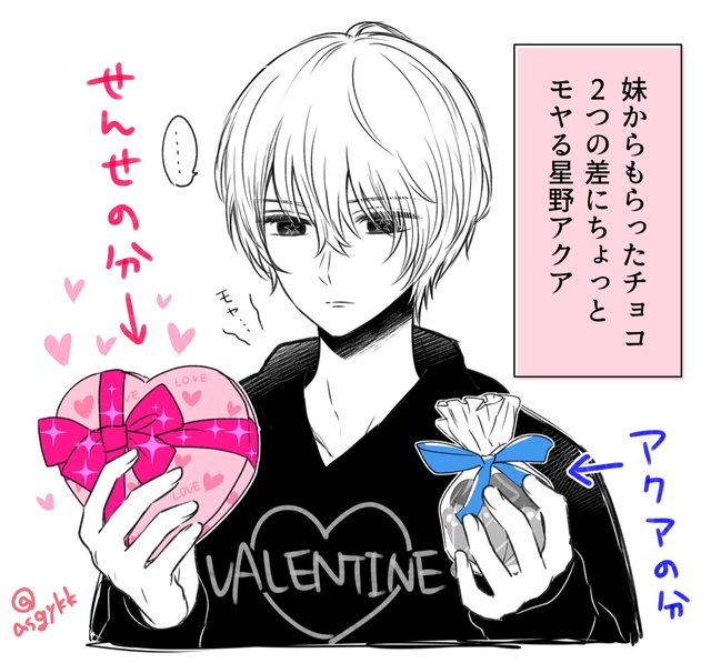 妹妹送了兩個巧克力(一個阿夸的一個醫生的)給哥哥。