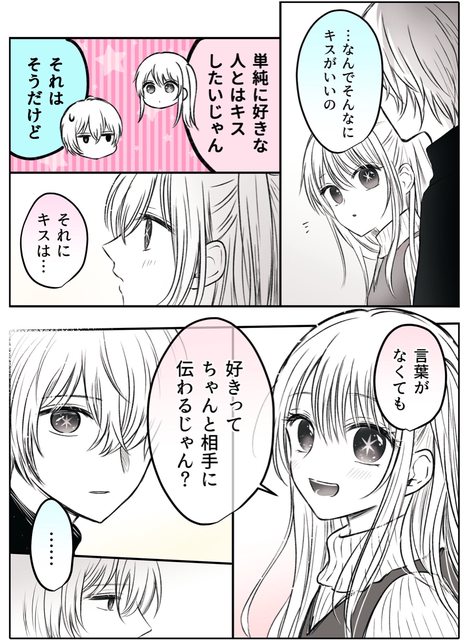 「然後接吻是…不需要任何言語就能把『喜歡』的心情傳達給對方不是嗎?」