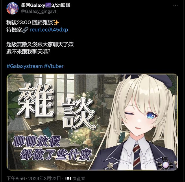 標題[Vtub] 銀河Galaxy 回歸雜談 聊休假中的旅遊、日常 王菲 如願 精華