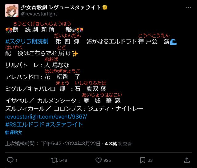 然後近期特殊ラジオ節目會在YT公開,應該會做到6月朗讀劇結束